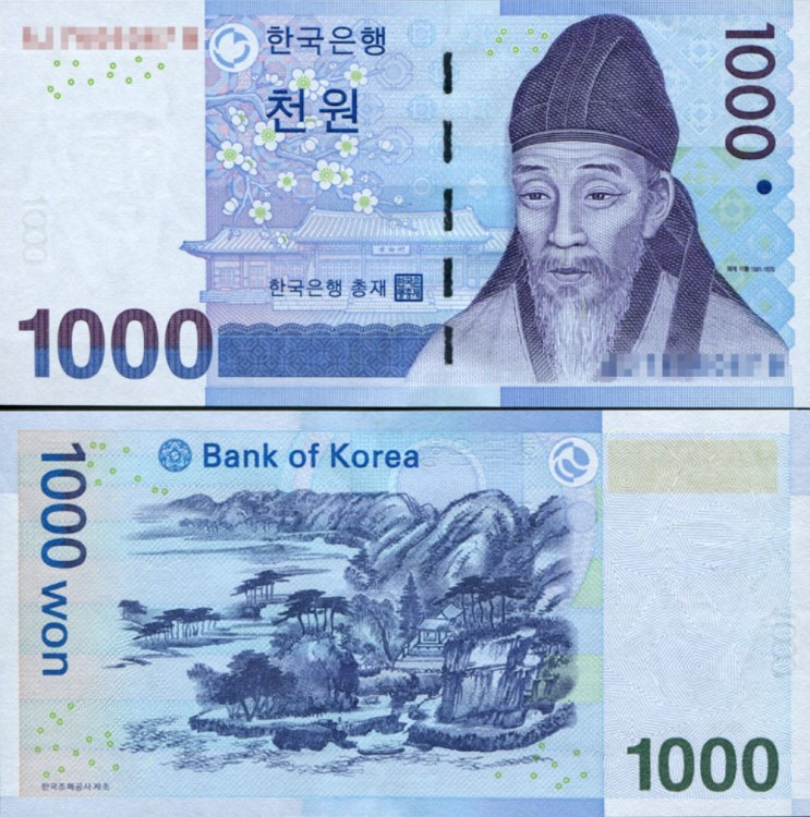 En el anverso del billete de mil wones está retratado Yi Hwang, conocido como Toegye.